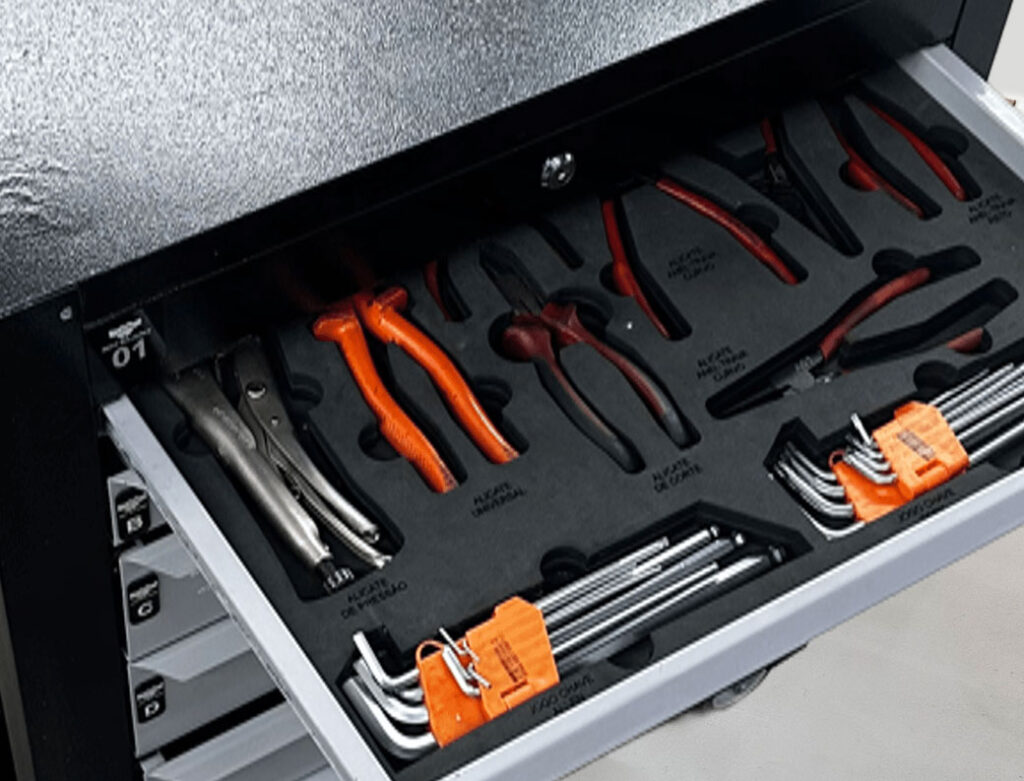 Se você procura cases organizadores personalizados em Sorocaba, a Refit Soluções desenvolve cases em EVA sob medida com recorte e gravação a laser, ideais para carrinhos de ferramentas.
