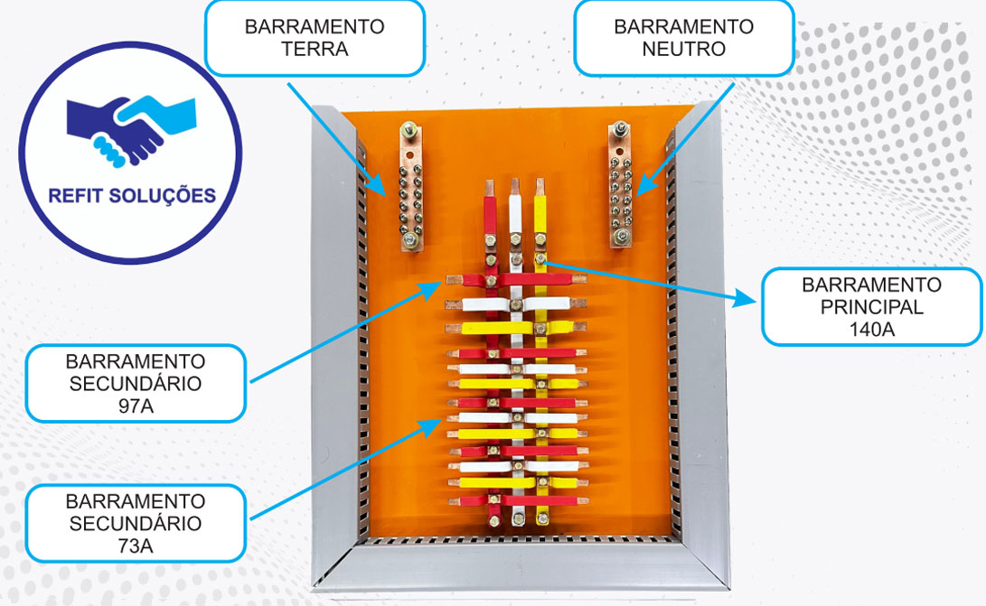 KBR03 Barramento principal de 140A com 15 barramentos de 73A e 6 barramentos de 97 ou 140A